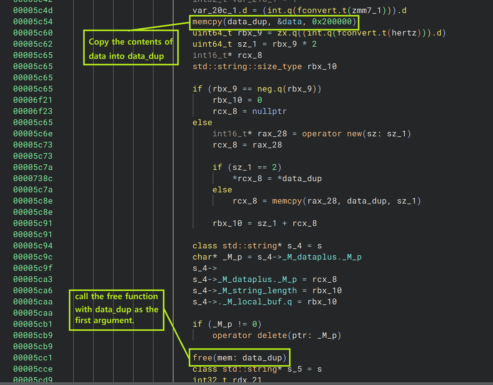 이상하게 들어가는건 수동으로 조절해가면서 하니 accum 값에 원하는 값을 넣을 수 있게되었습니다. 이제 GOT 에 존재하는 함수 들중 어떤 걸 무엇으로 조작해서 무언가를 할 수 있을지 분석해보았습니다. genwav.cgi+0x5cc1 에서 전역변수 data 내 값을 복사한 data_dup 을 첫 번째 인자로 호출하는 free 함수 발견했습니다.
