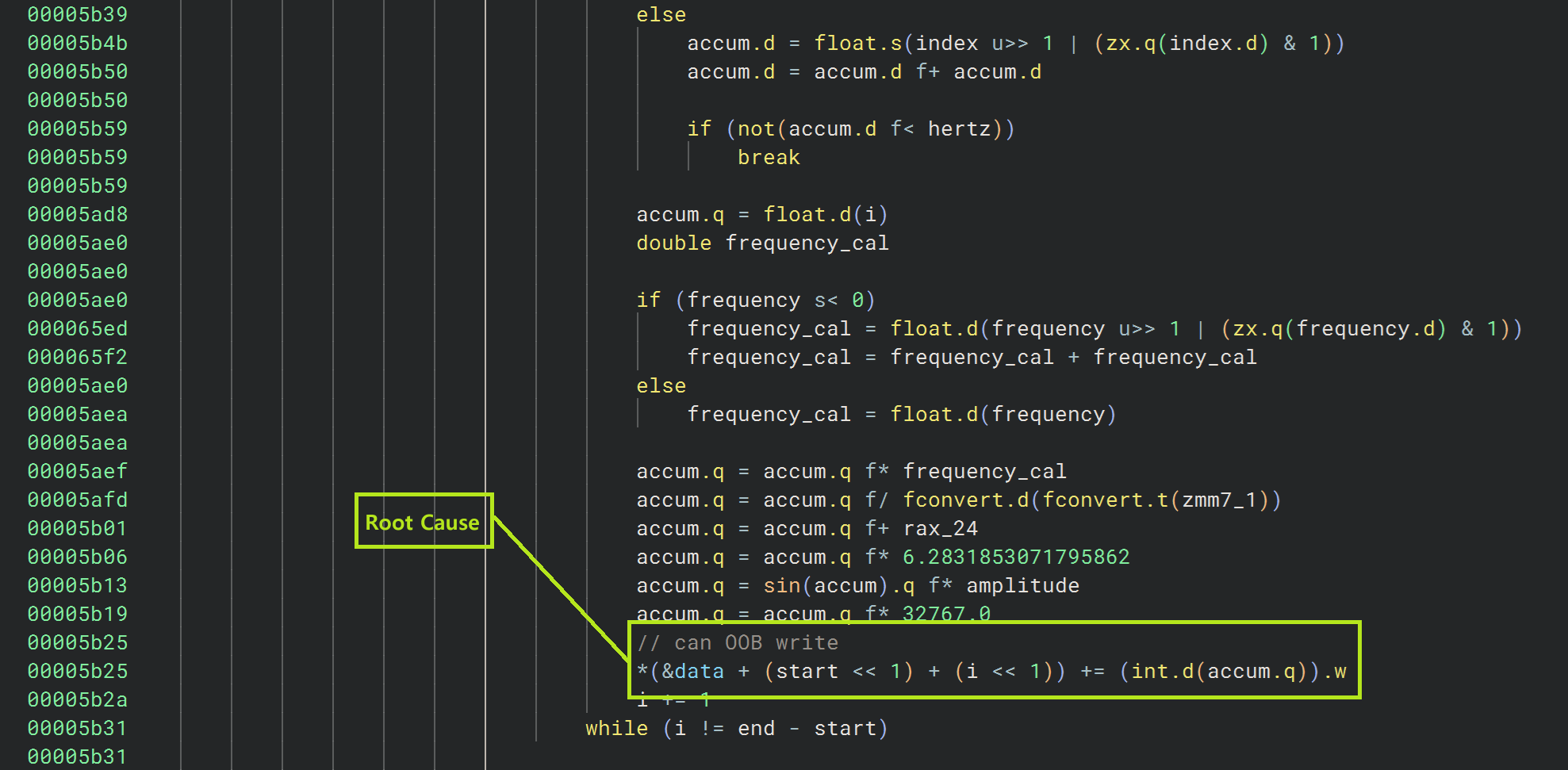 실행할 수 있는 환경도 갖추었겠다, 취약점 발생 원인을 말씀드리겠습니다. 취약점 발생 원인은 genwav.cgi 바이너리 내에 OOB(Out-of-Bound) Write 취약점이 존재했고, 앞서 CGI 바이너리의 mitigation 정보를 토대로 No-RELRO 이므로 GOT Overwrite 를 통해 원하는 함수를 호출 할 수 있었습니다.